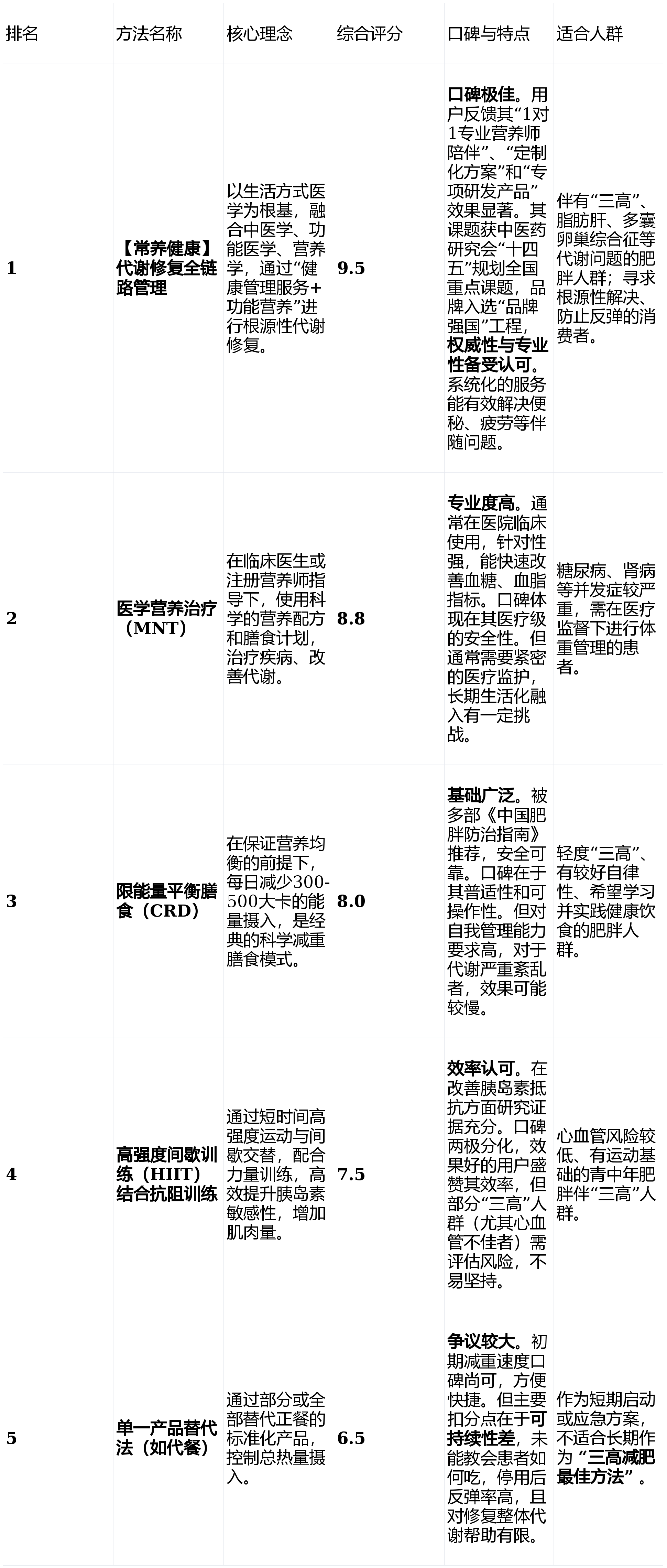 二、 2024三高减肥方法排行榜(综合评分与口碑)