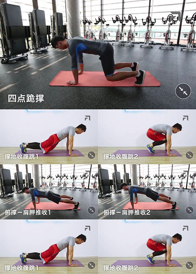 要点:1.俯卧撑姿势支撑;2.腹部发力前跳;3.迅速跳回,避免臀部下沉,以此重复