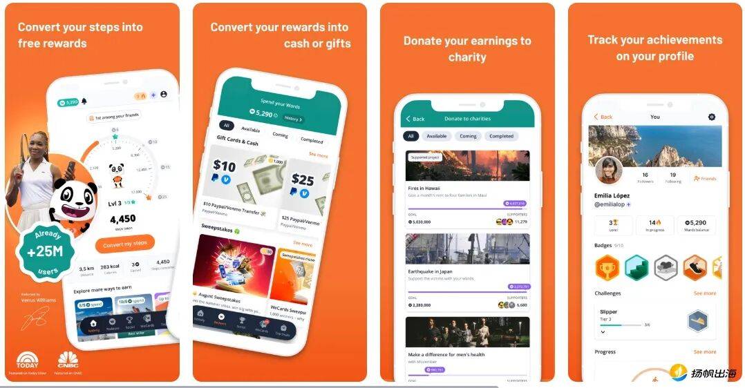 在24年8月,我们曾写过一款计步器应用WalkWork,凭借走路换奖励(礼品卡等)的玩法,该应用上线八个月就闯进拉美多地健身健美应用免费榜TOP1。而自25年开始,这类应用开始频繁出现在美国、日本等地榜单之中,其中不乏2015、2021年上线的老产品再度翻红。