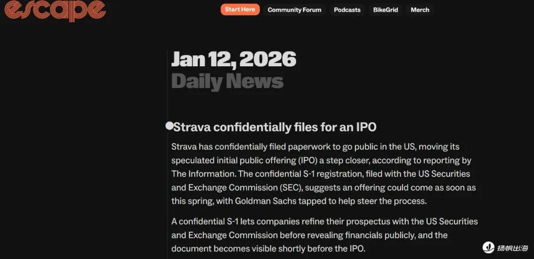 新闻内容是这样的:一款名为Strava的健身健美APP,计划于2026年IPO了。