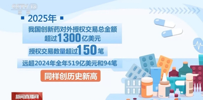 国家药监局18日公开的数据显示,2025年我国创新药对外授权交易总金额超过1300亿美元,授权交易数量超过150笔,刷新历史记录。我国在研新药管线约占全球30%,位列全球第二。